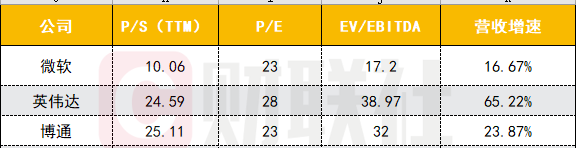 MSFT的P/S仅10.06倍,远低于NVDA的24.59倍和AVGO的25.11倍。固然微软营收增速(16.67%)低于两者,但其营收规模($3054亿)是NVDA($1871亿)的1.6倍、AVGO($638亿)的4.8倍,且利润结构更稳定、周期性更低,理应享受"大型稳定平台"溢价,而非折价。