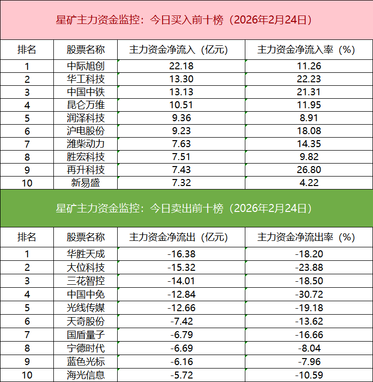 从个股主力资金监控数据来看,主力资金净流入前十的个股所属板块较为分散,中际旭创净流入居首。