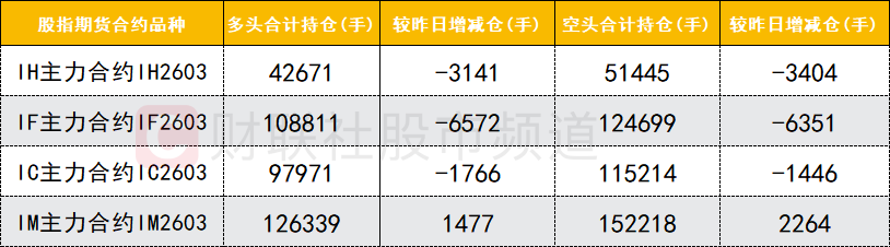 四大期指主力合约中,IH、IF、IC合约多空双方均减仓。IM合约多空双方均加仓,空头加仓数量较多。