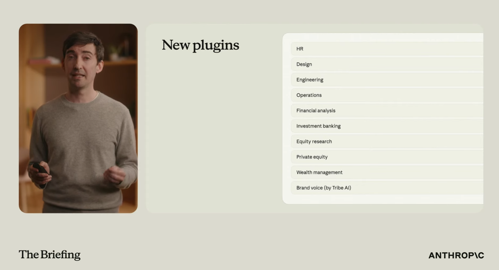 企业产品主管斯科特·怀特在简报会上透露,最新一批加入Claude Coworks的10个插件中有一半与资本市场有关,分别是金融分析、投资银行、股票研究、私募股权和财富管理。除此之外,设计、人力资源、运营、工程和企业品牌也是AI巨头新拓展的职场领域。