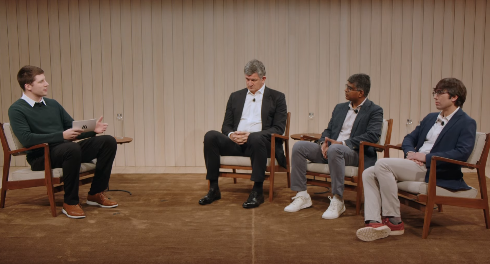 (汤森路透CEO史蒂夫·哈斯克(左二)也出席了Anthropic简报会的高管讨论环节)