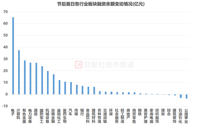 注:节后首日各行业板块融资余额变动情况(截至2月24日数据)