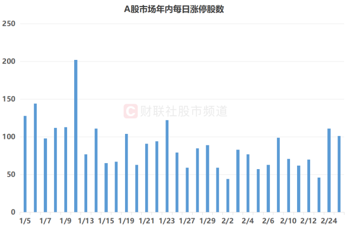注:A股市场年内每日涨停股数(截至2月25日收盘)