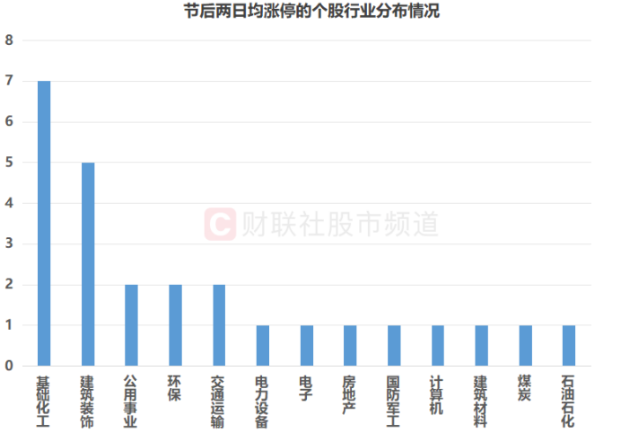 注:节后两日均涨停的个股行业分布情况(截至2月25日收盘)