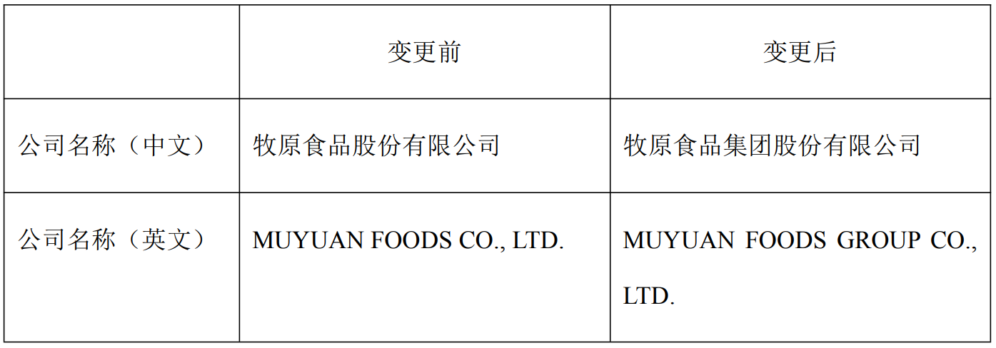 牧原股份公告称,公司于2026年2月25日召开第五届董事会第十三次会议,审议通过《关于变更公司名称的议案》,拟将公司名称由“牧原食品股份有限公司”变更为“牧原食品集团股份有限公司”。本次变更不涉及公司证券简称及证券代码变更。