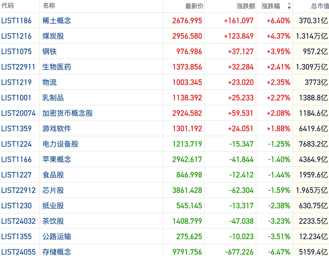 行情层面,今日各大板块继续分化。其中,钢铁、稀土等周期股再度走强,而AI主线相关的存储、芯片等板块则再度转跌。
