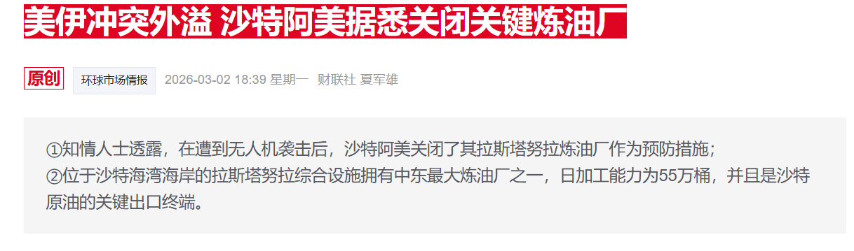 今日早些时候,中东石油巨头沙特阿美宣布,日产量55万桶的拉斯坦努拉炼油厂因“预防性措施”关闭。上周末冲突爆发后,以色列政府立即指示雪佛龙关闭其位于以色列近海的巨型利维坦天然气田设施。