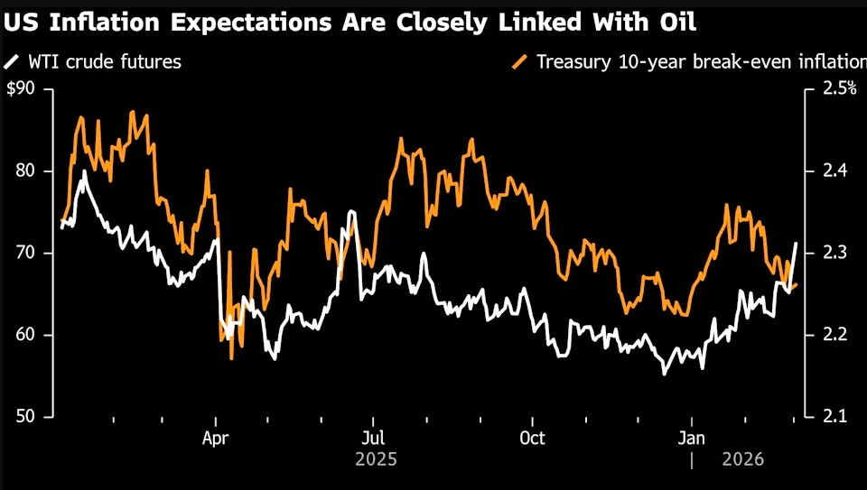 德意志银行上周的一份报告指出,相比地缘政治冲击本身,油价上涨对收益率的拉动作用更为“显著”。该行分析了过去几十年的重大地缘政治事件(如1990年伊拉克入侵科威特、9/11事件及俄乌冲突)后得出了这一结论。