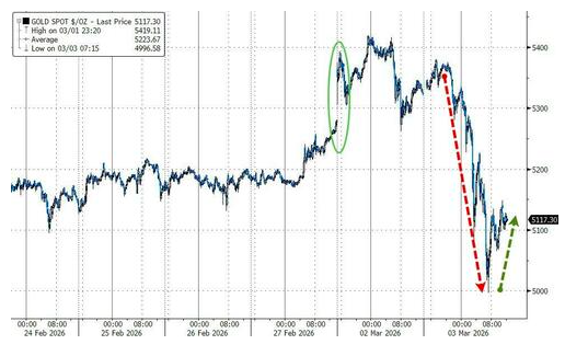 Arone指出,黄金价格的下跌——在周一触及四周高点后下跌了4%——显示了抛售的无差别性。