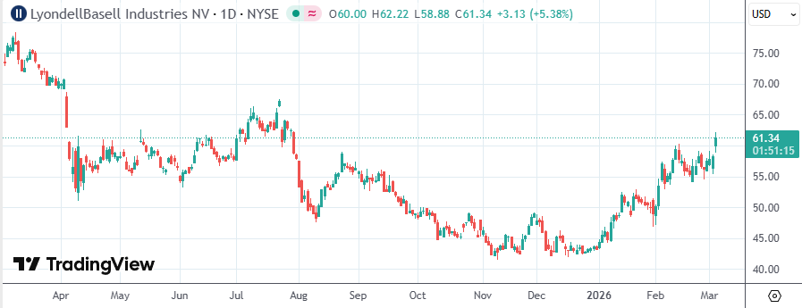 就在上月,利安德巴赛尔以市场环境充满挑战为由,将股息削减约50%。过去一年,利安德巴赛尔股价累计下跌16%,陶氏则累跌11%。