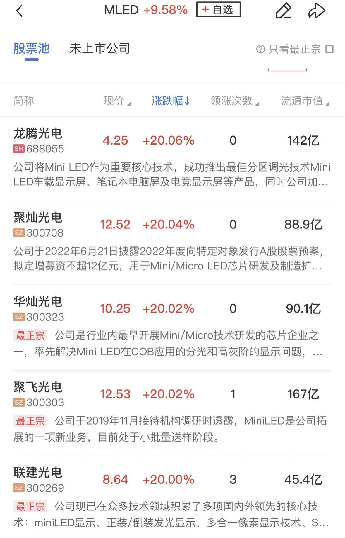 板块上,MicroLED概念涨幅居前,聚灿光电、华灿光电、三安光电、雷曼光电、瑞丰光电等涨停。