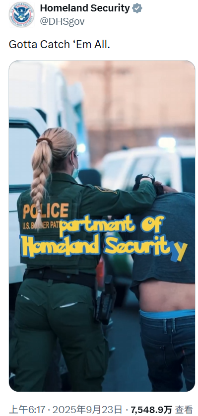 去年9月,美国国土安全部在一段视频中,穿插使用宝可梦动画片段与边境巡逻队和移民执法局(ICE)的抓捕画面,还使用宝可梦的标志性口号“把他们全部收服”。对此,宝可梦公司发表了一份类似的异议。