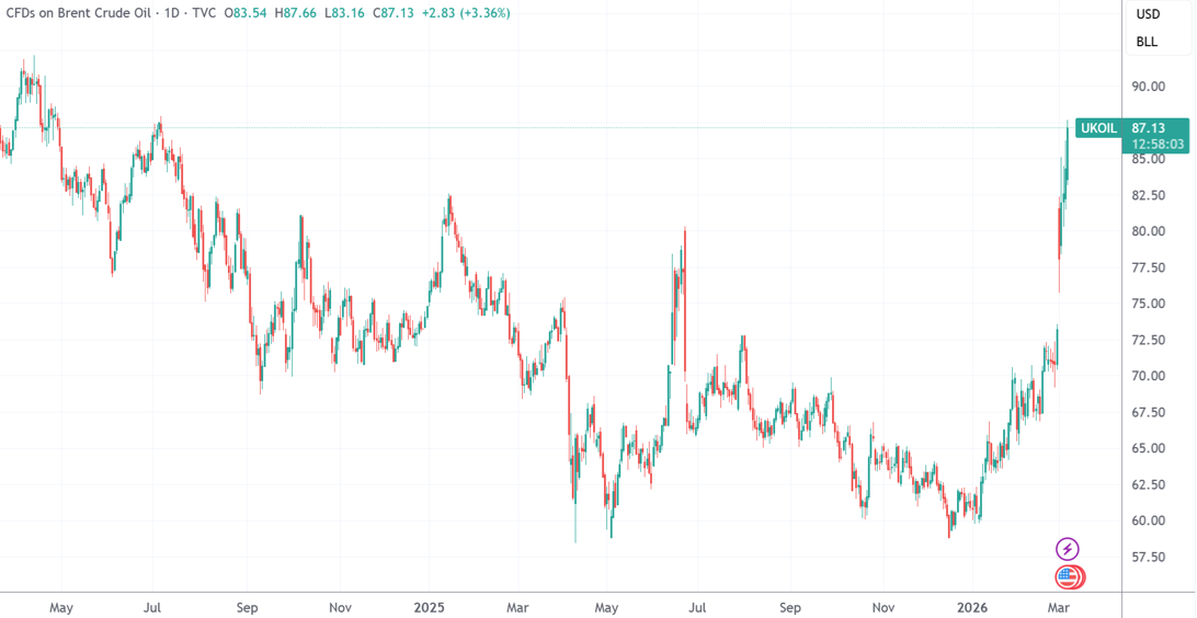 ①中东战事升级,国际原油价格飙升,布油突破每桶90美元,美油升至89美元上方;