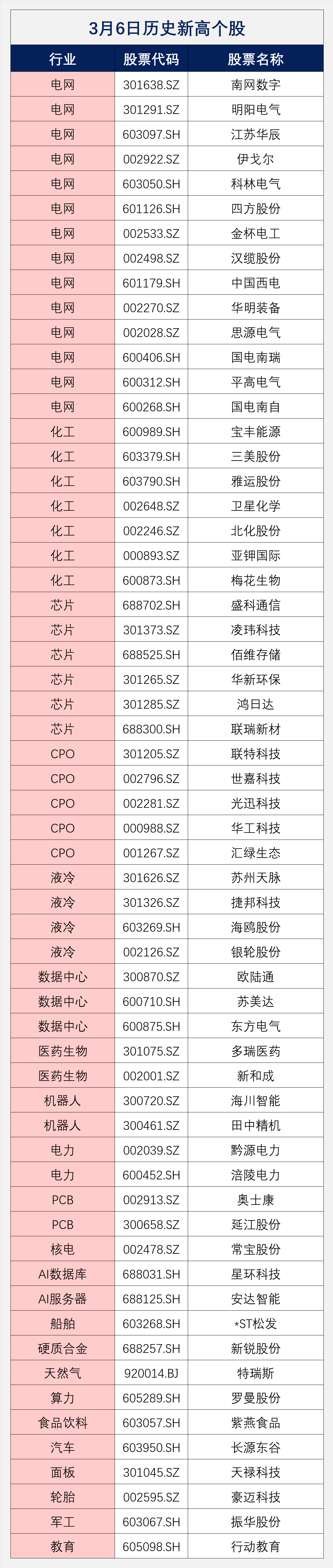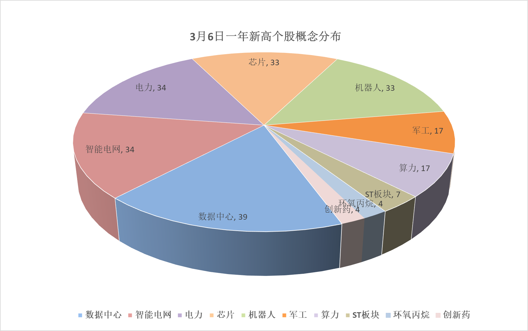 点评:创一年新高个股较上个交易日增加29家至174家。其中,前三的数据中心、智能电网、电力概念分别有39、34、34家个股创一年新高。历史新高个股中电网位列第一,中金公司指出,国内电网投资景气延续,特高压项目自下半年进入核准招标加速期,电网是新能源投资的后周期,仍有较大的投资缺口有待补齐,看好电网投资景气延续。相关个股:新风光与华为数字能源正式签署战略合作协议,双方将围绕构网型储能、微电网、数据中心供配电系统、零碳园区等前沿场景深度协同;山大电力主要从事电网智能监测领域和新能源领域相关产品的研发、制造、销售和服务。