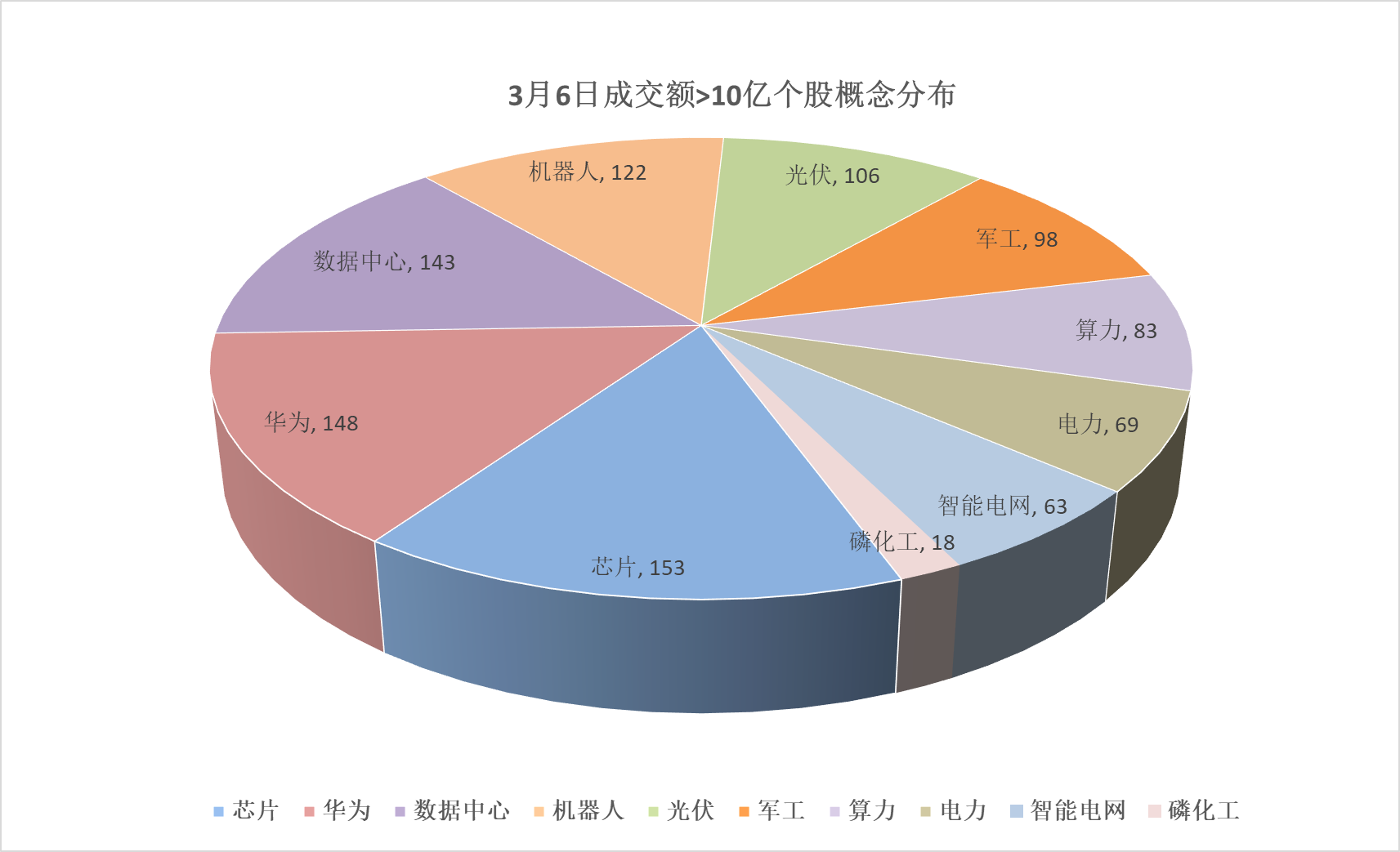 点评:市场相较于上个交易日缩量1899亿元,两市成交10亿以上个股减少54家至507家。其中,前三的芯片、华为、数据中心概念分别有153、148、143只个股,分别减少17、减少12、增加2只个股。周五三大指数低开高走全线收红,市场聚焦算电协同和资源涨价两条主线。算电协同中的电网持续大涨,顺钠股份、汉缆股份都走出了3连板,板块的逻辑很硬,内外都有催化,国内是“十五五”电网投资4万亿的预期,国外是美国750亿美元的电网升级计划,这个细分也是市场绝对的情绪核心和资金主攻阵地。另一个细分算力板块也表现强势,美利云2连板,宁波建工、航锦科技、拓维信息等涨停,算力后续的韧性和中长期的潜力更大。涨价的化工板块同样掀了涨停潮,金牛化工5天3板,金正大、红宝丽、卫星化学等也都涨停。驱动的逻辑主要是中东局势影响一些化工品供应和春耕需求,属于有业绩改善预期的方向。总体上,市场情绪有所回升但量能未有效放大,并且轮动方向有点多,说明场外资金还在观望,更多是存量资金的调仓换股,现在整体仍处于试错与修复期。