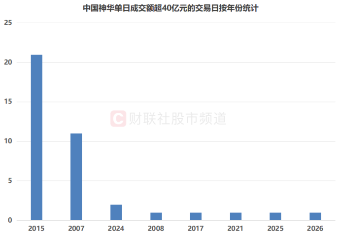注:中国神华单日成交额超40亿元的交易日按年份统计(截至3月9日收盘)