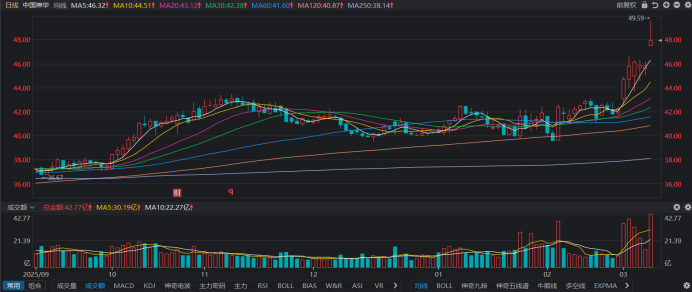 ②中国神华今日全天成交额成交额42.8亿元,为2025年8月以来近7个月高点。