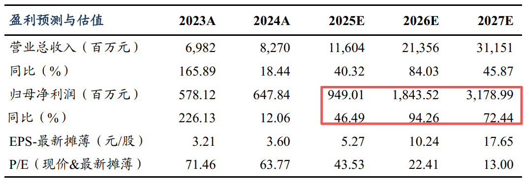 曾朵红维持预计公司2025-2027年归母净利润为:9.5/18.4/31.8亿元,同比+46%/+94%/+72%,盈利增速有望高于可比公司。