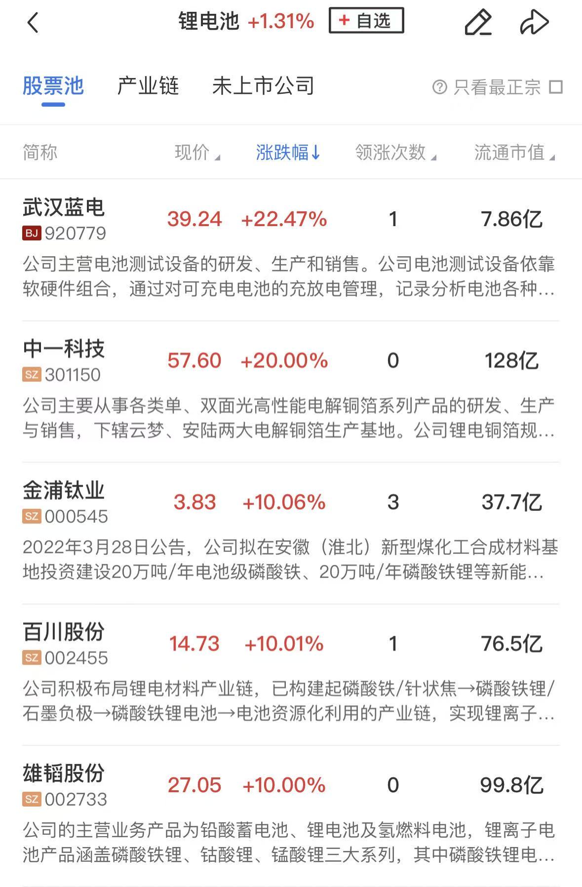 电池板块涨幅居前,中一科技、雄韬股份涨停,海博思创、鹏辉能源、力王股份、德福科技、亿纬锂能、海科新源等个股涨幅居前。