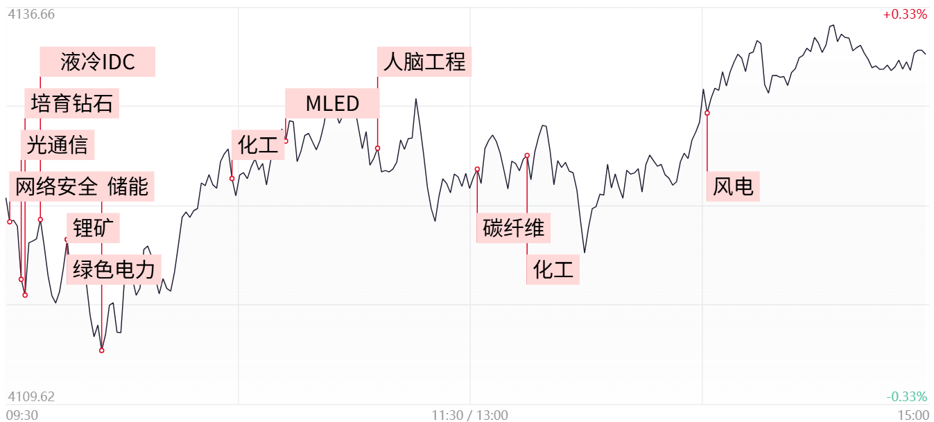 ①今日三大指数集体反弹,深成指涨超2%,创业板指涨超3%,其中算力硬件概念持续拉升,并逐步向液冷、光纤等细分延伸;