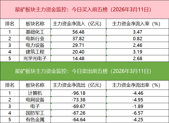 板块资金流出方面,计算机板块主力资金净流出居首。