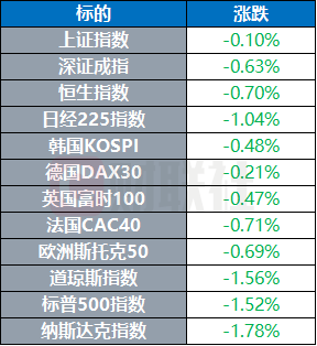 美东时间周四,美股三大指数集体收跌,道指跌1.56%,纳指跌1.78%,标普500指数跌1.52%。