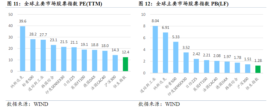 与全球主要股票市场相比,港股依旧处在估值低位。从PE来看,恒生指数在3月10日的PE仅为12.4倍,沪深300为14.3倍,纳斯达克达到39.6倍,日经225为21.1倍。从PB来看,恒生指数目前为1.28倍,沪深300为1.33倍,纳斯达克达到6.91倍,日经225为2.42倍。