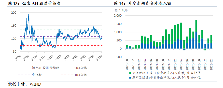 从月度南向通资金流入规模看,在经历了2025年前11个月的大幅净流入后,2025年12月开始南向通资金净流入有所减小,但2026年2月以来已逐步开始恢复。