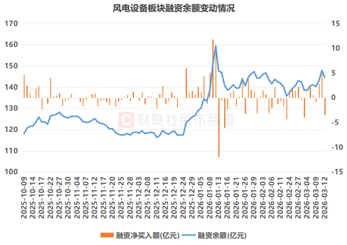 注:风电设备板块融资余额变动情况(截至3月12日数据)