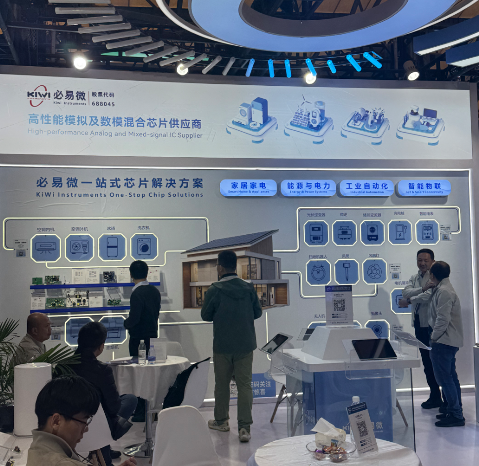 在必易微展台上,该公司以电源管理、电机驱动、电池管理三大核心能力为出发点,展示了其为能源与电力、家居家电、工业自动化、智能物联等领域客户提供一站式芯片解决方案与系统集成服务。