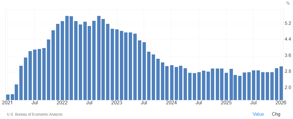 纵向来看,上一次核心PCE同比通胀率达到3.1%还是在2024年三月份,这意味着该指标录得约两年来的最高水平。