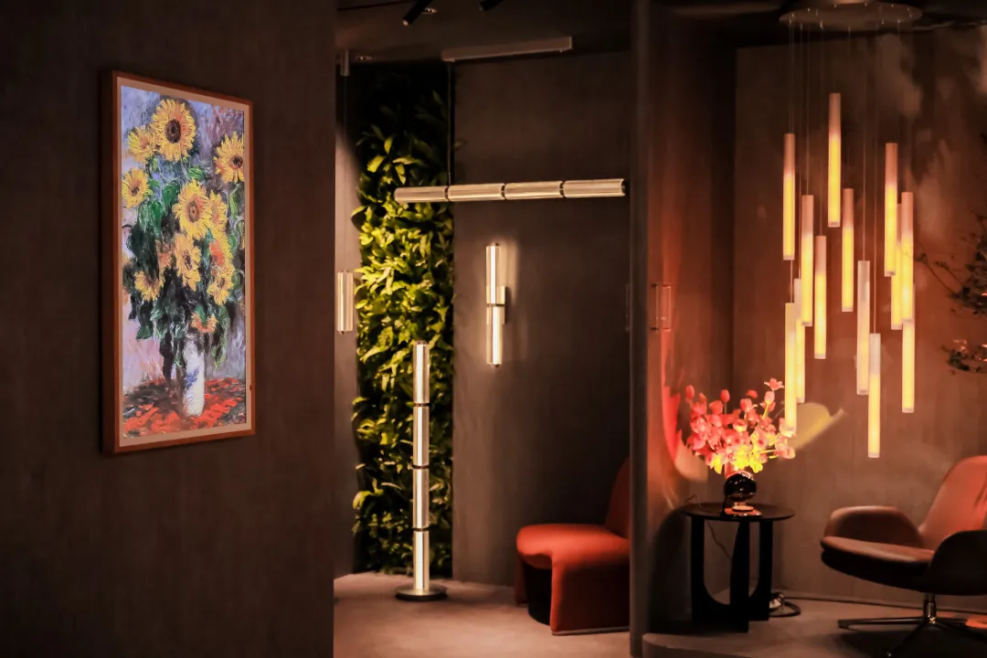 在照明实验室,晴空灯通过AI算法模拟室外日光变化,让用户“把24小时日光带回家”。“人来灯亮”让光随人动“步步生花”,离开时自动关灯节能。