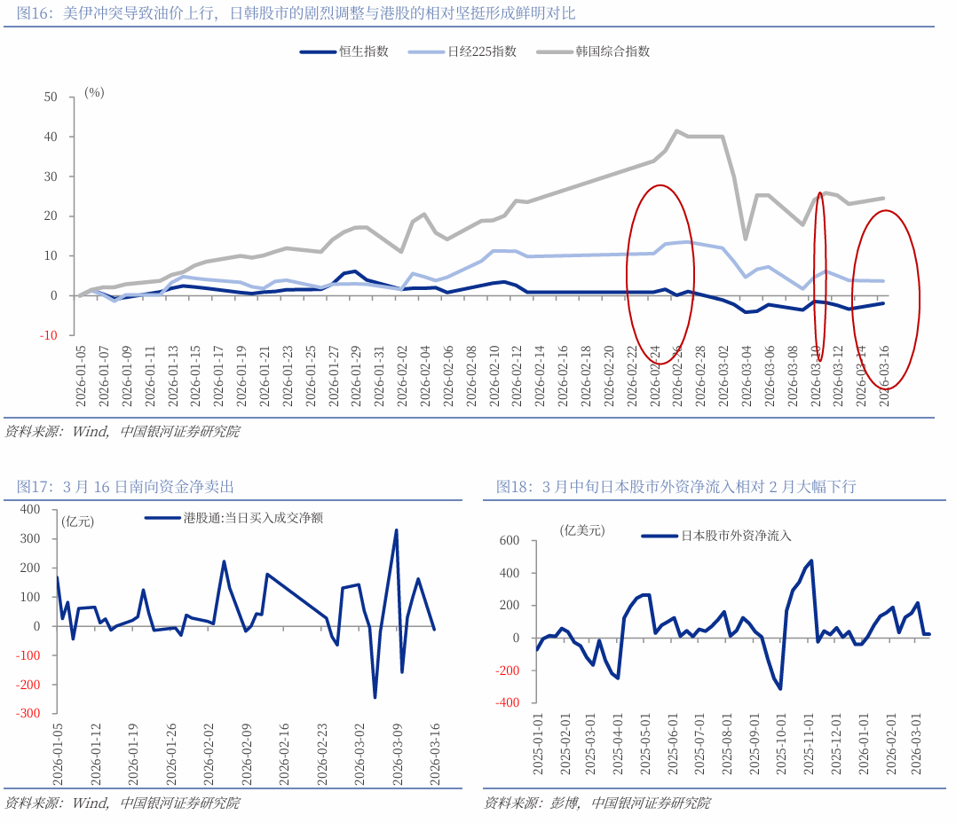 国际资金“跷跷板”效应:部分从其他脆弱市场(尤其是日本股市)流出的资金,流入了估值洼地的港股。日本因能源高度依赖进口,在冲突中经济脆弱性暴露,导致资金流出。