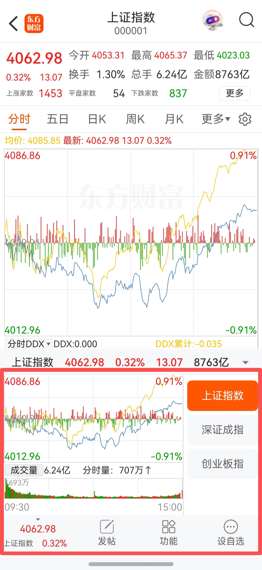 - 点击个股页面左下角指数区域,可快速在不同指数间切换,灵活掌握大盘动向。