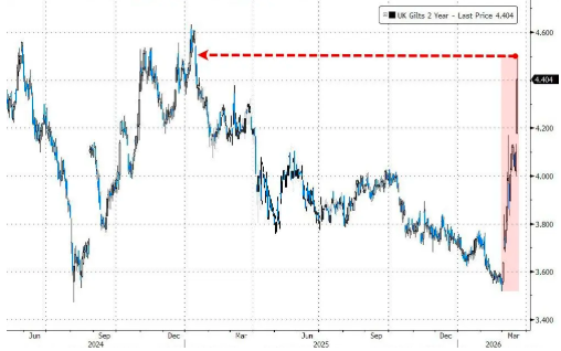 值得注意的是,近来债券市场的下跌主要集中在对货币政策变化最为敏感的短期债券上,这凸显了自上月底美国对伊朗发动战争以来,全球前景发生了多么迅速的变化。