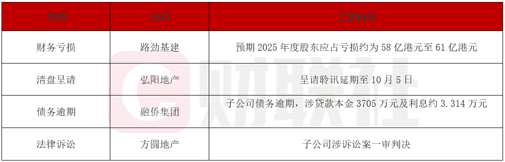 【路劲基建:预期2025年度股东应占亏损约为58亿港元至61亿港元】