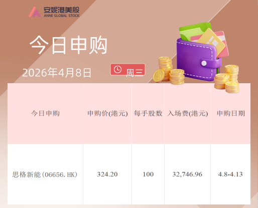 2026年4月8日-2026年4月13日招股,拟全球发售1357.39万股H股,香港公开发售占约10%,国际发售占约90%,另有约15%超额配股权。发售价将为每股发售股份324.20港元。每手100股,预期股份将于2026年4月16日上午九时正开始在联交所买卖。