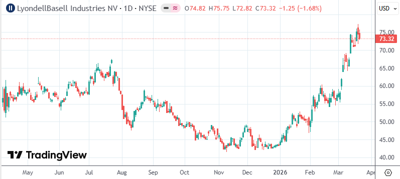 与此同时,在美国上市的化工企业LyondellBasell自2月28日以来,股价已上涨26%。大摩估计,由于霍尔木兹海峡事实上被关闭,全球约9%的塑料贸易流受到影响。