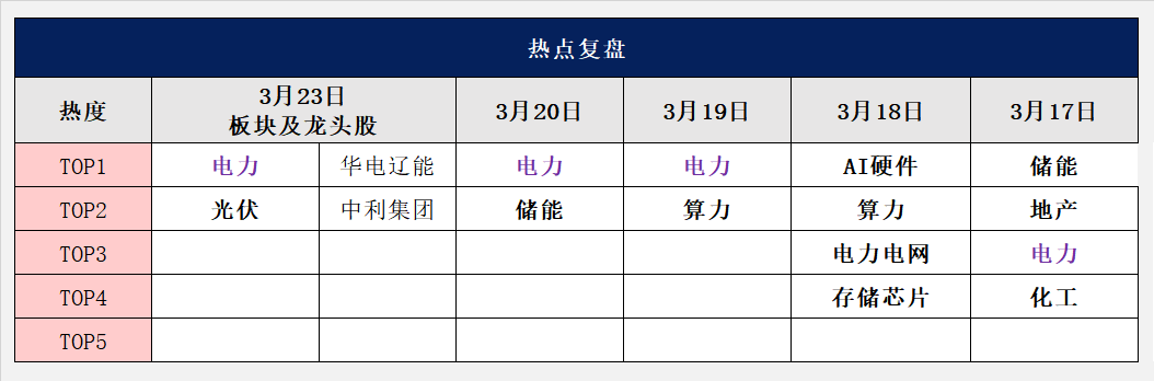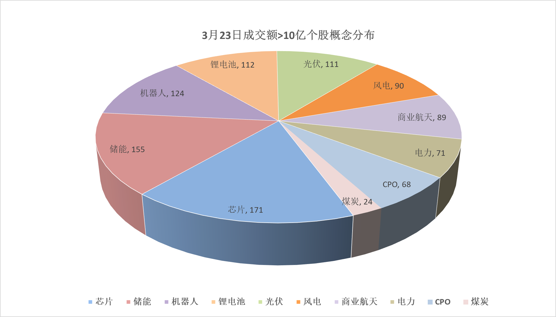 点评:市场相较于上个交易日放量1447亿元,两市成交10亿以上个股增加29家至531家。其中,前三的芯片、储能、机器人概念分别有171、155、124只个股,分别减少7、增加1、增加13只个股。市场呈现典型的指数放量大跌、个股普跌态势,仅煤炭、电力、光伏等与能源安全、避险相关的板块逆势走强。电力是唯一具有持续性的板块,华电辽能6连板,东方新能3连板,廊坊发展、立新能源、浙江新能、芯能科技等涨停。从宏观逻辑上看,中东冲突导致传统油气价格高企且供应受限,那么光伏、煤炭等都可以理解为相对传统油气的一种新能源替代。这个逻辑链条如果成立,电力板块的炒作就不是单纯的题材博弈,而是有基本面支撑的产业趋势,资金愿意在这里抱团,也是有底气的。总的来说,指数破位之后,外围的不确定性依然存在,短期很难快速反转,越是这样,资金越会抱团最核心的主线。