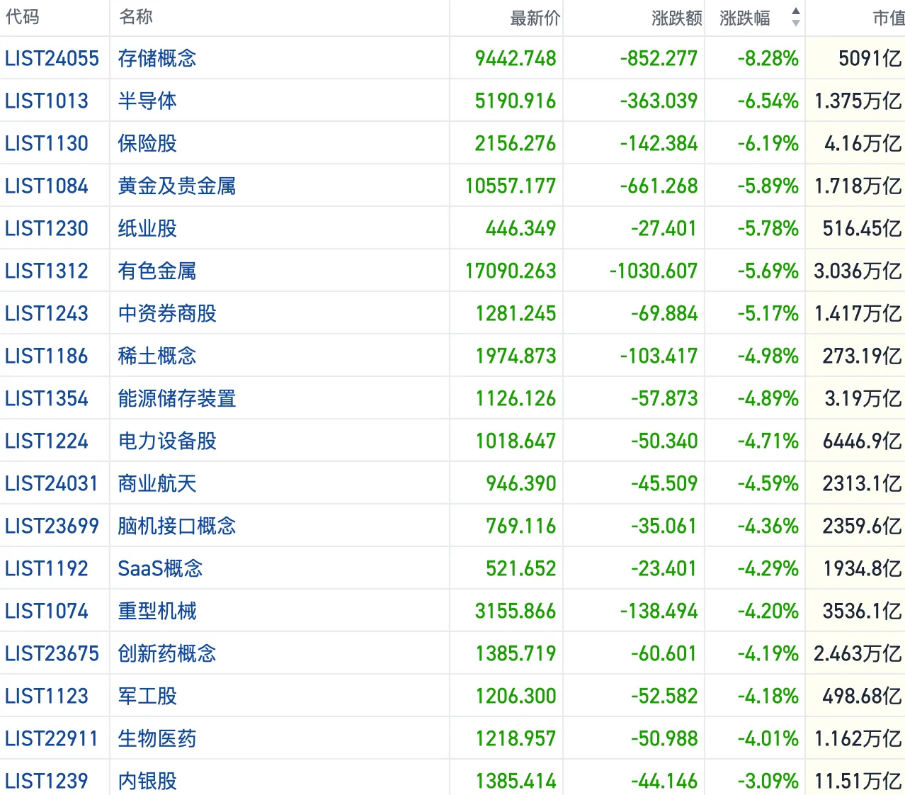 行情层面,今日各大板块呈现无差别的抛售行情。