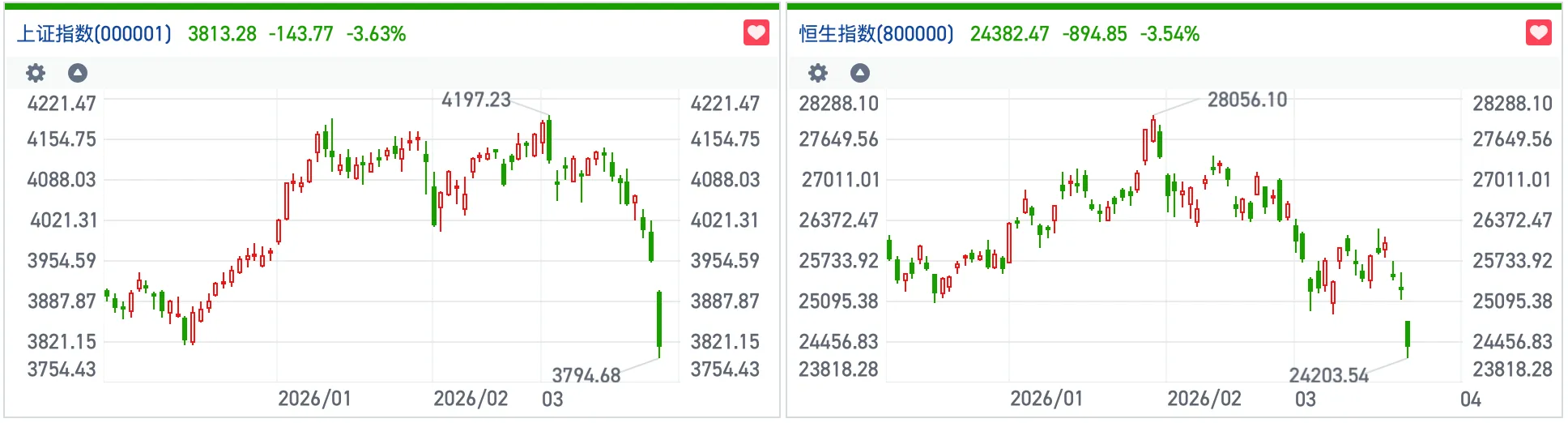 【权重股集体承压 恒指放量重挫演绎杀跌行情】
