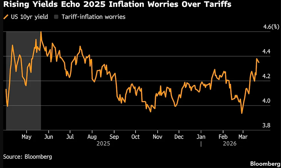 PIMCO还提到了去年债券市场同样剧烈波动的一段时期——当时美国对贸易伙伴征收的关税远高于预期,也曾引发了美国国债收益率的短时飙升。“与2025年4月美国宣布加征关税后出现的波动类似,针对中东冲突而对央行预期进行的快速重新定价,引发了局部波动,并为逆势投资创造了机会,” Wilding和Balls写道。