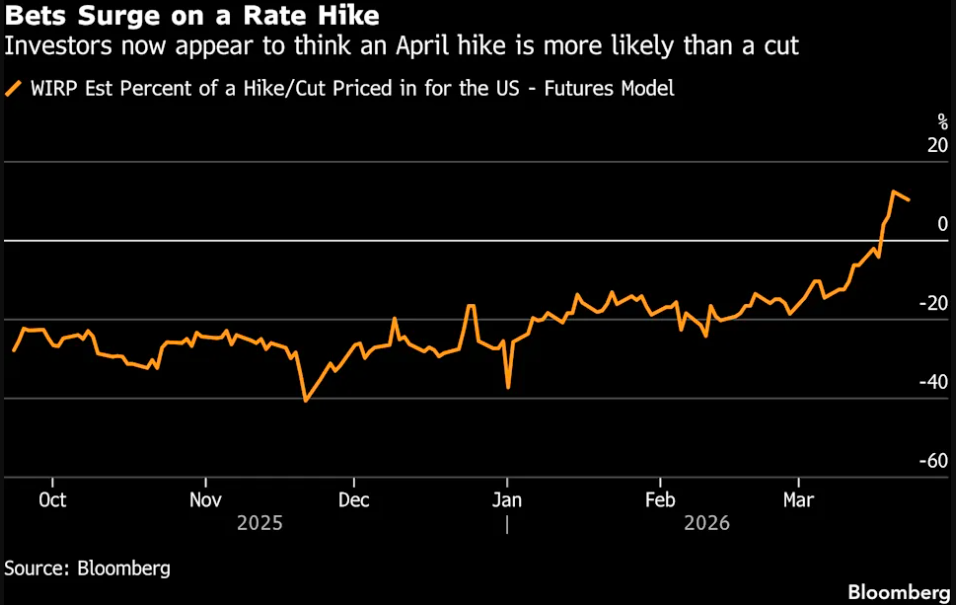 投资者的这一转变,凸显了美伊战争以及油价飙升可能带来的连锁反应给美国经济带来的巨大不确定性。但密切关注美联储动向的经济学家和分析师表示,短期内加息的可能性依然极低……