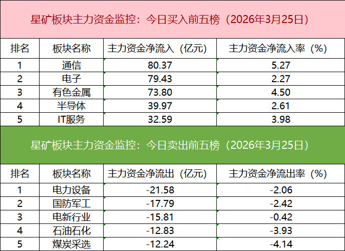从主力板块资金监控数据来看,通信板块主力资金净流入居首。