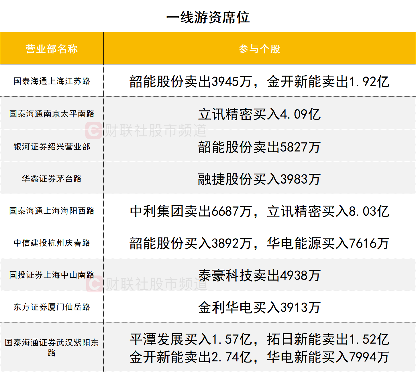 一线游资活跃度明显提升,立讯精密强势涨停,获两家一线游资(国泰海通证券上海海阳西路、国泰海通证券南京太平南路)分别买入8.03亿、4.09亿。福建板块人气股平潭发展获一家一线游资(国泰海通证券紫阳东路)买入1.57亿。