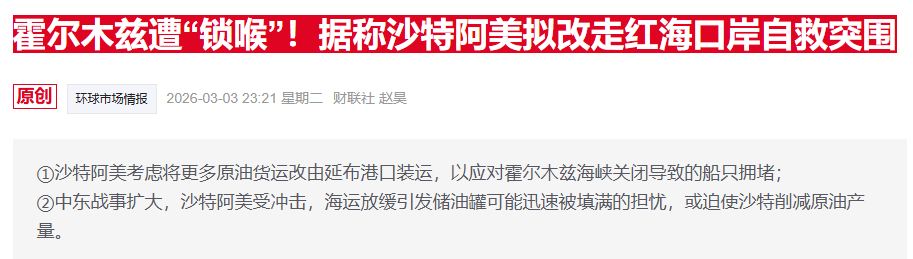 沙特是该地区仅有的两个能够大规模绕开霍尔木兹海峡转运石油的国家之一,成为全球供应的重要“生命线”。目前,沙特计划将红海港口的原油出口提高至每日500万桶,这一目标已在可实现范围之内。