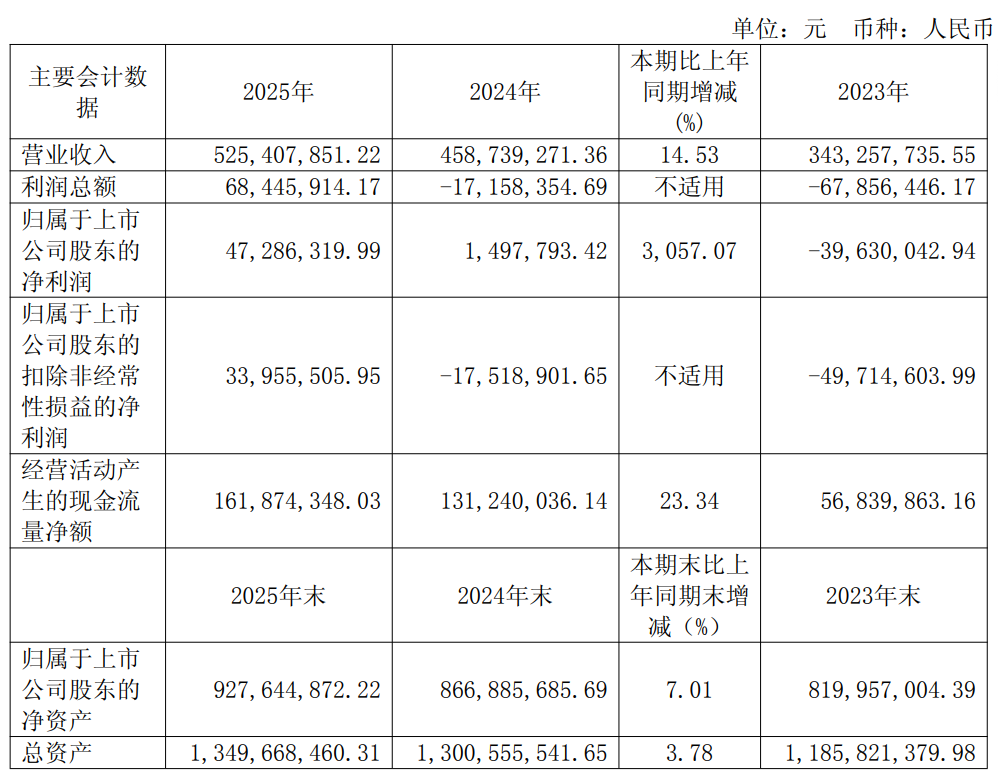 2025年,赛诺医疗实现总营收5.25亿元,同比增长14.53%,归母净利润为4728.63万元,同比暴增3057.07%,扣非净利润为3395.56万元,同比扭亏。