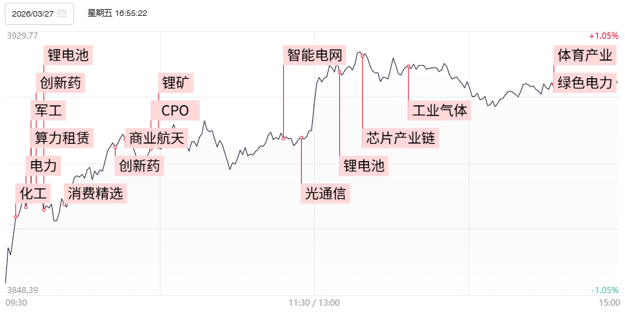 财联社3月27日讯,今日78股涨停,16股炸板,封板率为83%,新能泰山、融捷股份4连板,美诺华6天5板,中南文化15天8板,奥瑞德8天5板,万邦德、狮头股份、宁波能源4天3板,广西能源、石大胜华、云南锗业6天3板。市场低开高走,深成指涨超1%。沪深两市成交额1.85万亿,较上一个交易日缩量903亿。盘面上,市场热点快速轮动,全市场超4300只个股上涨。板块方面,能源金属、创新药、化工板块领涨;保险、电力、银行板块逆势下跌。截至收盘,沪指涨0.63%,深成指涨1.13%,创业板指涨0.71%。