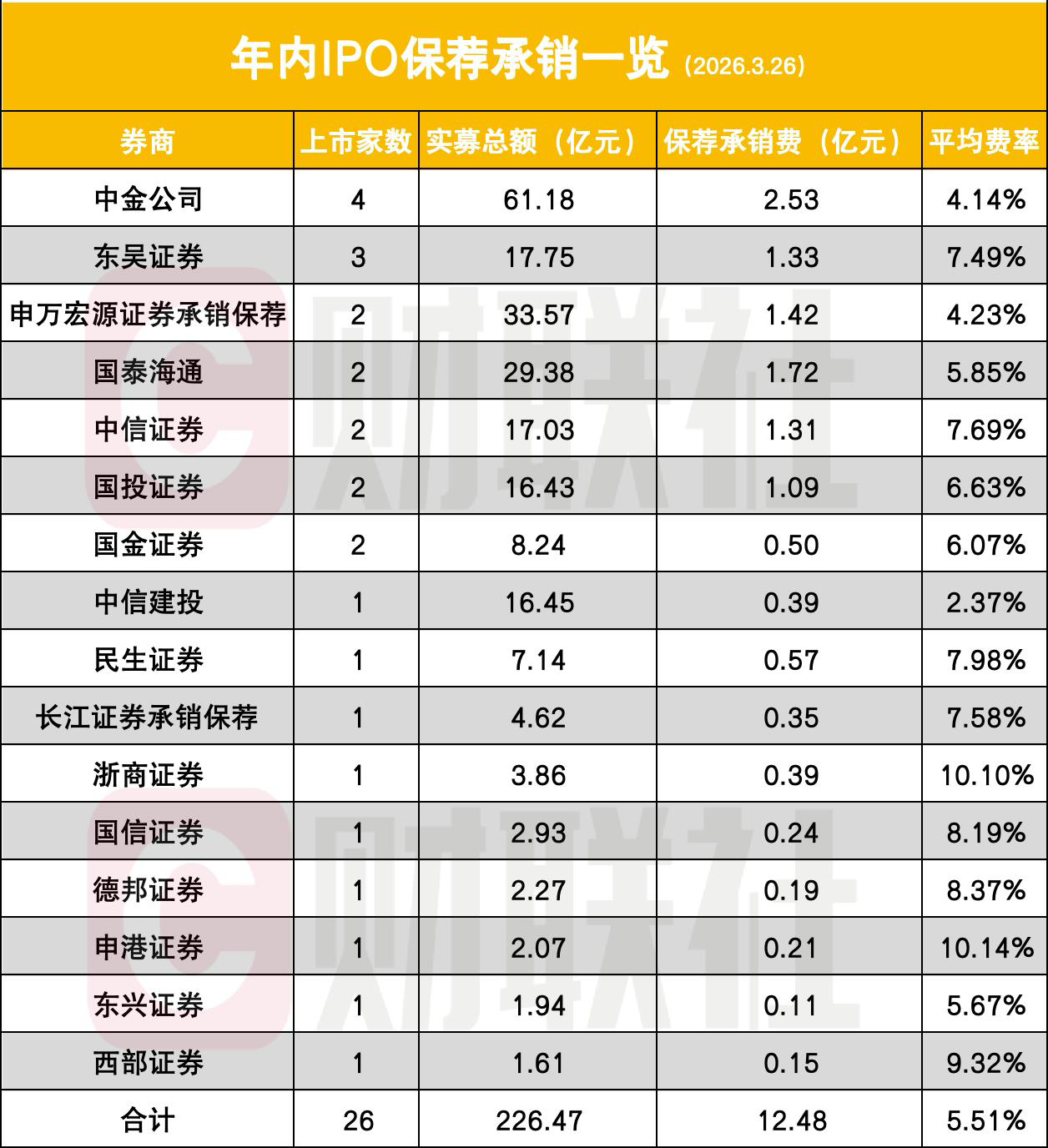 16券商分润一季度IPO业务