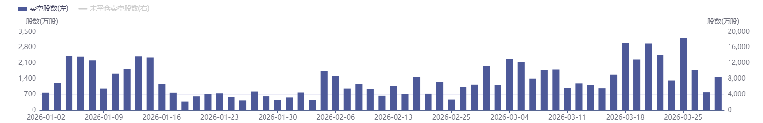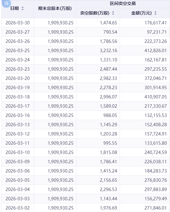 阿里巴巴的卖空数据呈现小幅回落。其中卖空股数呈现先升后降态势,月初为1976.69万股,3月30日收窄至1474.65万股,降幅约25.4%,但期间仍触及2487.44万股的高位波动。卖空金额则从27.18亿港元降至17.66亿港元,盘中一度冲高至41.28亿港元。